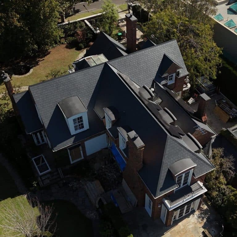 Structural correction, premium Canadian Glendyne slate installation and solar integration on a landmark interwar English-style home in Melbourne’s inner east.